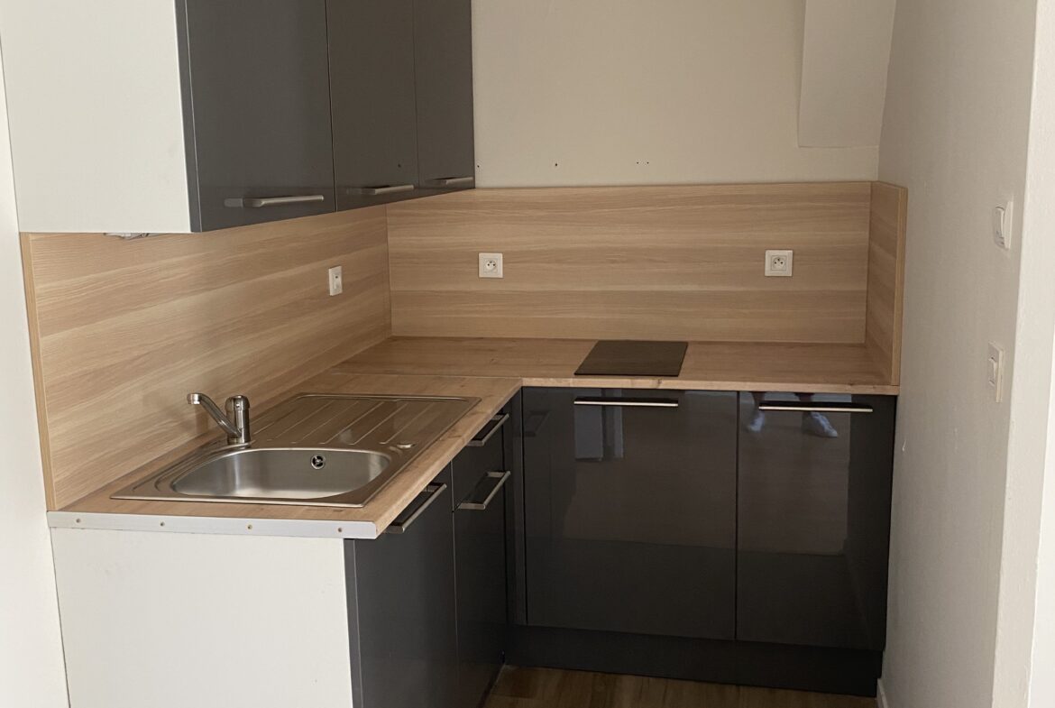 Deux pièces d’une surface de 49 m2 composé d’une cuisine semi séparée aménagée et équipée de plaques chauffantes, plan de travail, meubles de rangement, un séjour, une grande chambre avec un grand placard aménagé, une salle bains, un WC. Chauffage individuel électrique à inertie.