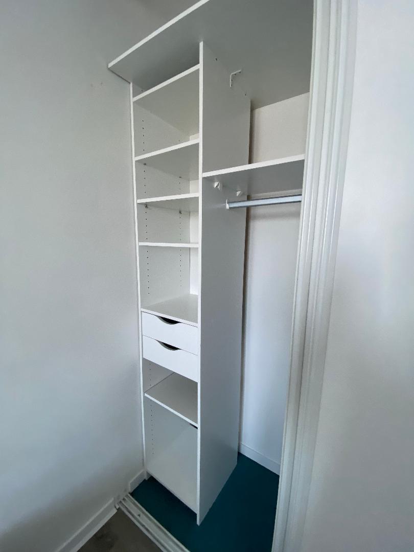 Deux pièces au 1er étage composé d’un séjour avec un placard, une cuisine séparée aménagée et équipée, une chambre avec un placard aménagé, une salle de bains WC, branchement MAL dans la sdb. Chauffage individuel électrique.