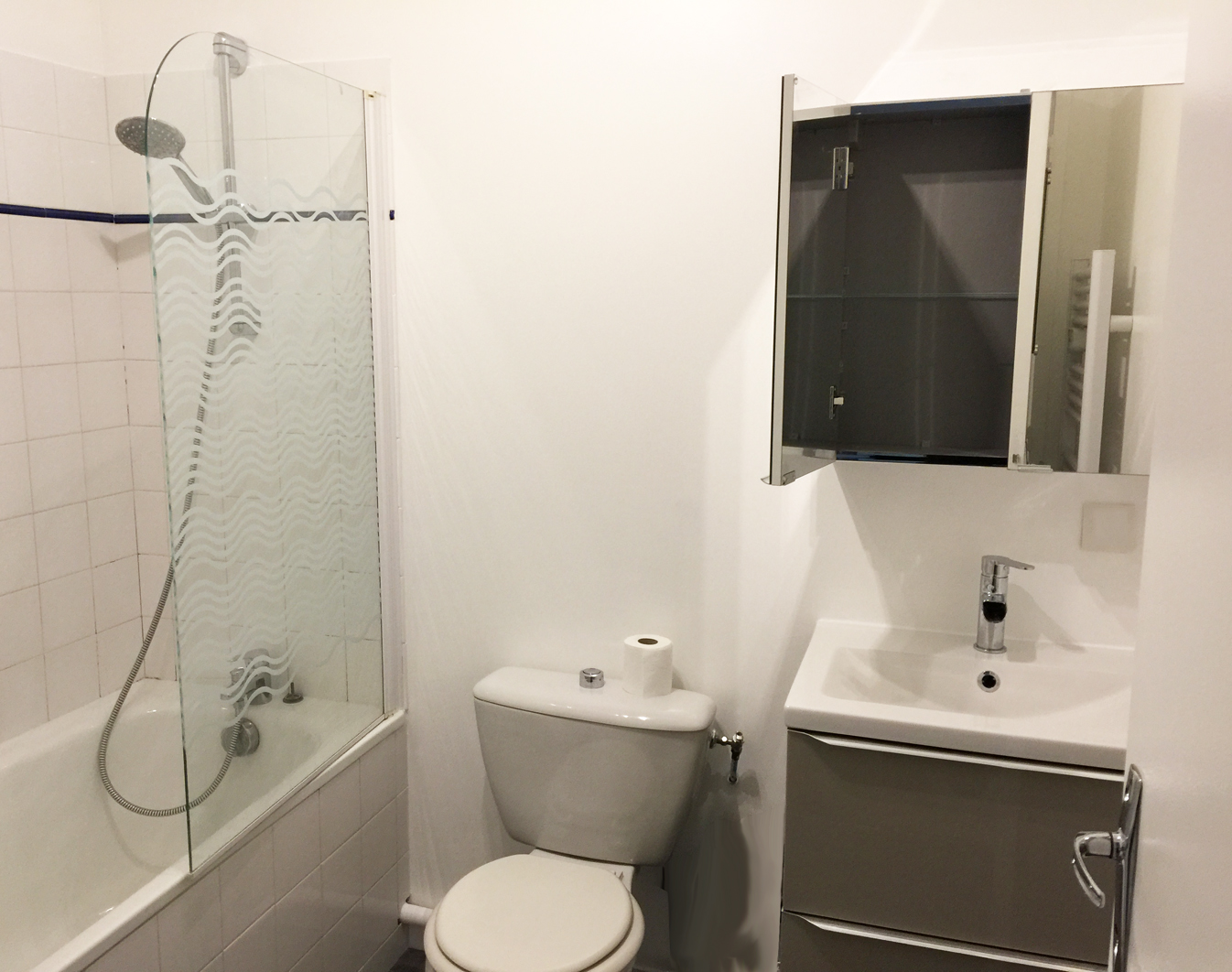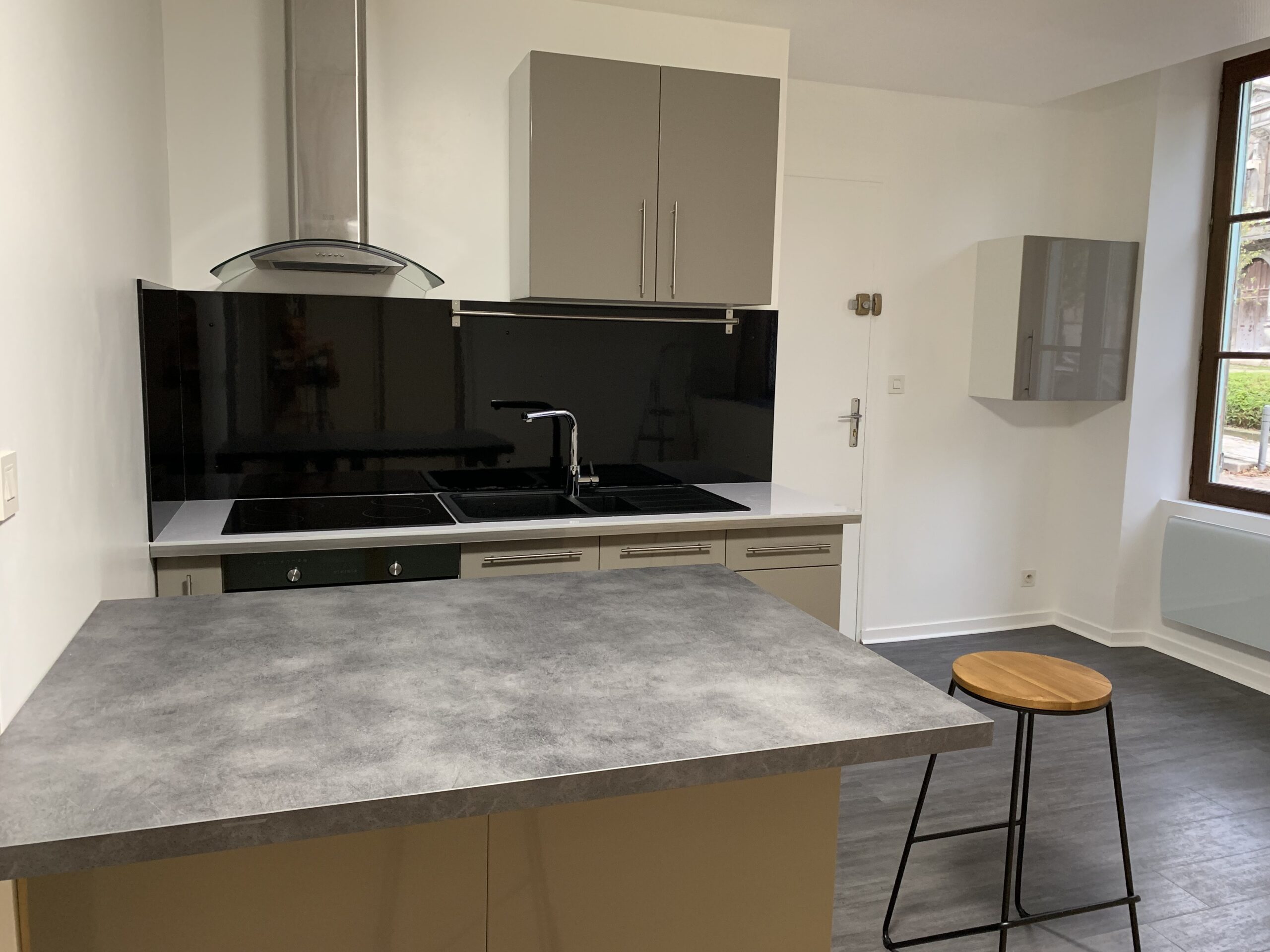 Studio au RDC composé d’une cuisine aménagée et équipée, ouverte sur le séjour, un espace chambre, une salle de bains WC.